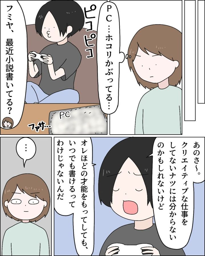 3. 「PCホコリかぶってる」家事から解放された夫は小説も書かなくなった。口だけ夢追い夫と過保護義母|ママ広場マンガ