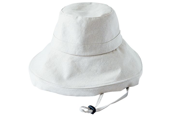 見た目も涼しげな麻素材で、季節感あるコーデを。接触冷感の生地なので汗止めにも。帽子[ストラップ付き]¥7,920(アンタイトル)