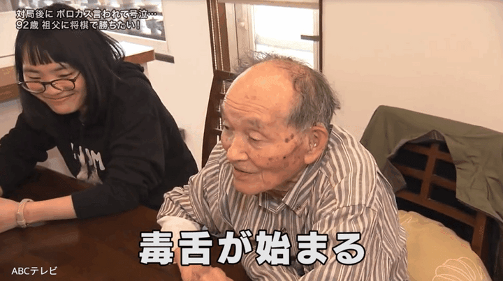 【動画】将棋激強92歳祖父、探偵・石田靖にも圧勝、からの毒舌の嵐! 「これだいぶ悔しいな!」「勘弁してください!」