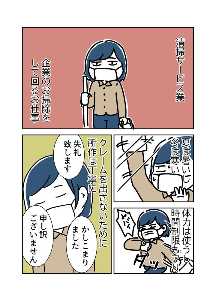 新しく入ってきた人は、一週間の座学研修で、掃除の仕方や洗剤の種類、汚れの落とし方を学んだあとに、実際に現場で研修を受けることになっていました。