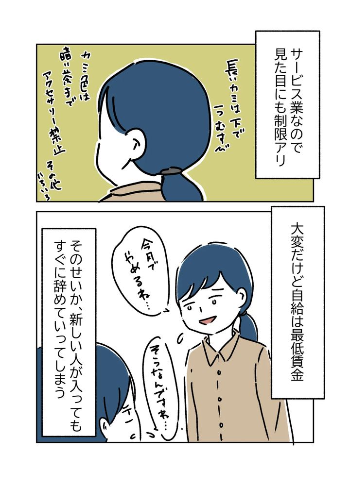 清掃サービス業でパートとして働いていた魚田コットンさんは、新しく入ったO本さんを紹介されました。