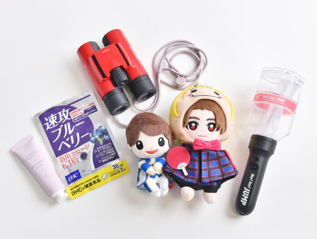 「timelesz」の松島聡さんと「Hey! Say! JUMP」の山田涼介さんを推しています。グッズはもちろん、ライブで少しでも推しの姿をはっきりと見るために、アウトドア向けで手ぶれがしにくい双眼鏡と、人気のブルーベリーサプリは必需品です。ハンドクリームは山田涼介さんがプロデュースしたもの。推し活から元気をもらっています。