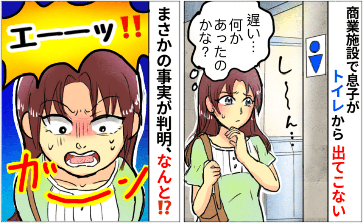 「何かあった!?」商業施設のトイレから出てこない息子。迷子の放送…?息子!?衝撃の事実が判明!
