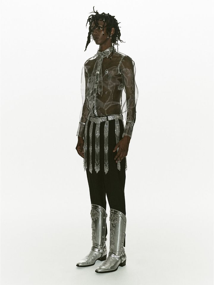 さらに甲冑やクリスタルビーズがついたコルセット、鎧を彷彿とさせる形のアクセサリーは中世のヨーロッパを想起させる。
