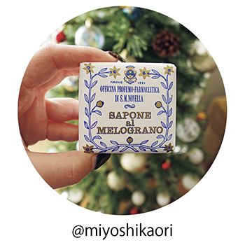 「『サンタ・マリア・ノヴェッラ』のザクロソープ。服と一緒にしのばせておくと朝のコーディネートが楽しくなります」(MARTE ブランドマネージャー・三好香織さん) ソープ/ともに本人私物