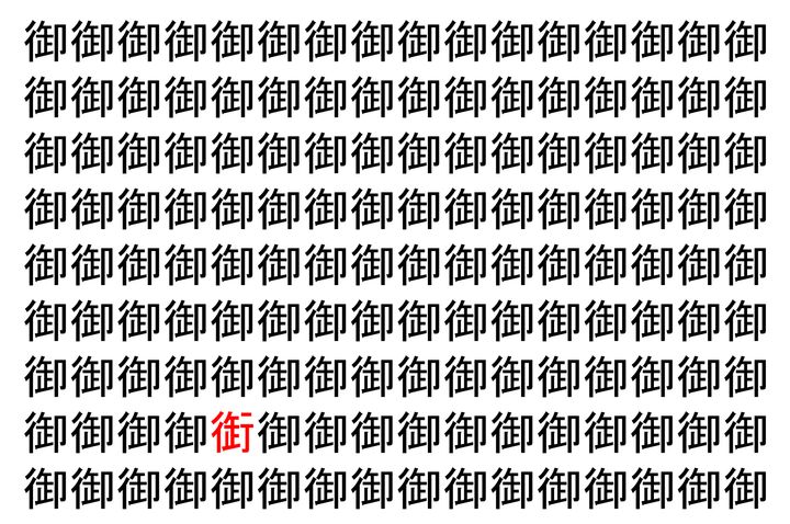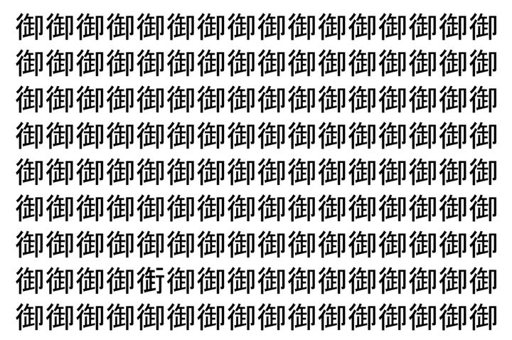 2. 【脳トレ】「御」の中に紛れて1つ違う文字がある!?あなたは何秒で探し出せるかな??【違う文字を探せ!】