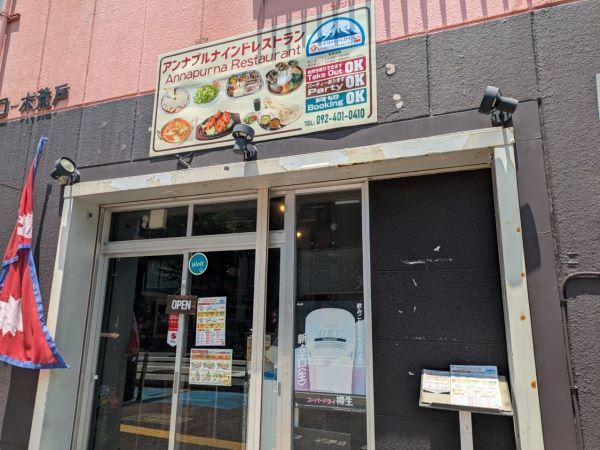 場所は福岡市地下鉄空港線大濠公園駅から北側に歩くこと5分程。那の津通り沿い「荒戸1丁目」 交差点の角にある「アンナプルナ インドレストラン」というインドカレー専門店です。