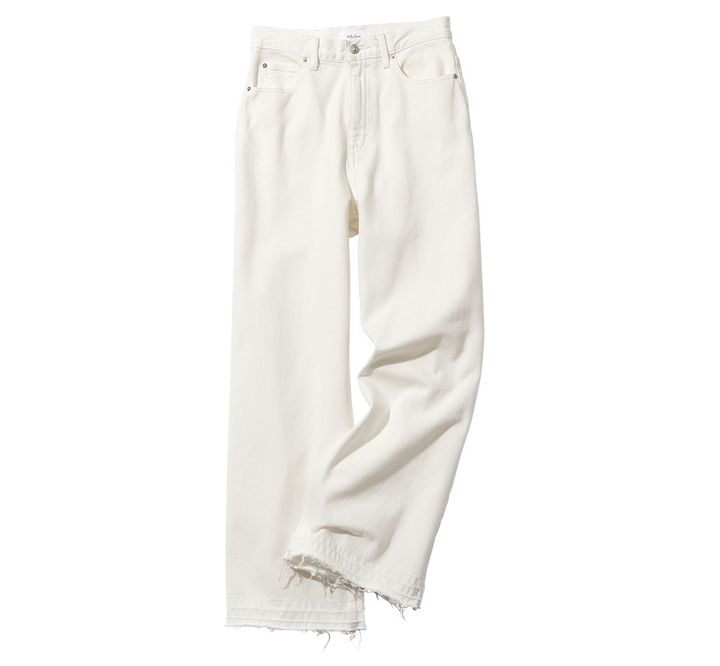 雨の日のオール白が実現。ついに雨でも大人可愛いスタイルの時代に突入! 撥水加工の白デニムと甘トップスなら、水ハネを気にせずいつも通りのオシャレを楽しめる!