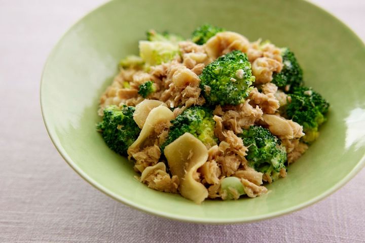 ゆでたブロッコリーとあえて、マヨネーズで調味すれば、食べごたえのあるサラダに。