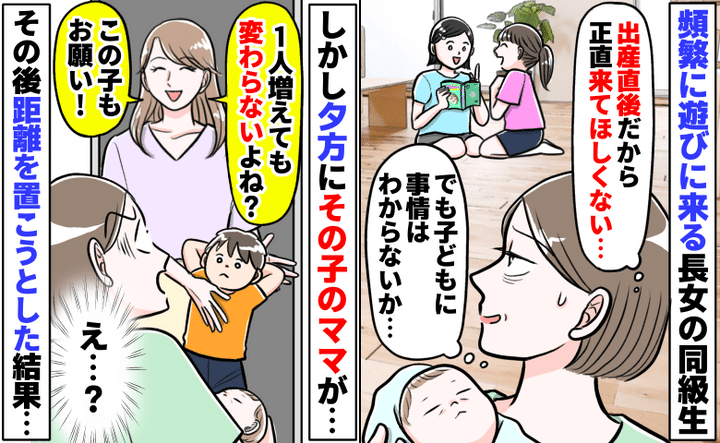 産後でしんどいのに子どもを預けてくるママ「1人増えても変わらないよね!」え…?距離を置き始めると