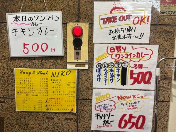 日替わりのワンコインカレーは500円とさらにお得ですよ♪月曜日はぼっかけ、火曜日はウインナー、木曜日はあいがけ、金曜日はチキン、土曜日はその日にメニューを決めるので当日のお楽しみです。