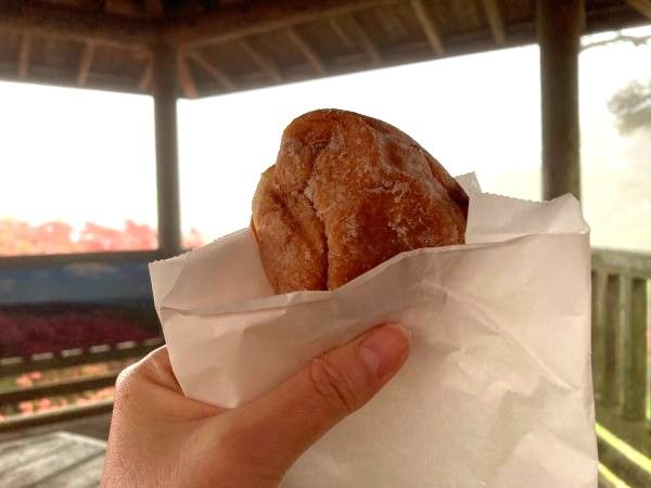 私も揚げパンを購入し、徳仙丈山へ! 徳仙丈山は思っていた以上に急な山で運動不足の体にはきつかったですが、休憩時に揚げパンを食べて栄養補給!!