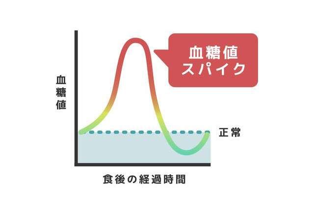 「時間がないからつい早く食べちゃう」という場合、これも血糖値スパイクの原因に。食べるスピードが速いと、インスリンの分泌が間に合わず血糖値の上昇も急になります。さらに、急上昇した血糖値を下げようと後からインスリンが大量に出ると血糖値の急降下を招き、血糖値スパイクにつながります。