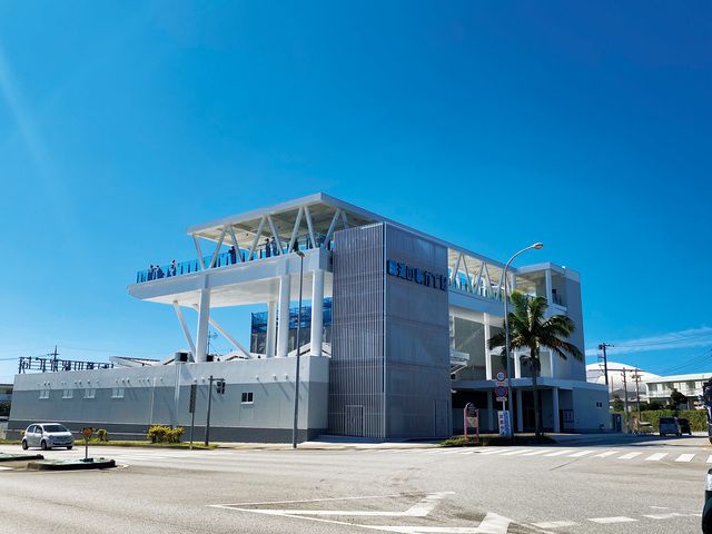 那覇市からは北へ約23km、沖縄本島の中部に位置し、東シナ海に面した西海岸線に接する嘉手納町。町の総面積の82%が米軍基地が使用する土地となっており、「道の駅 かでな」は、基地に隣接する全国でも唯一の道の駅です。