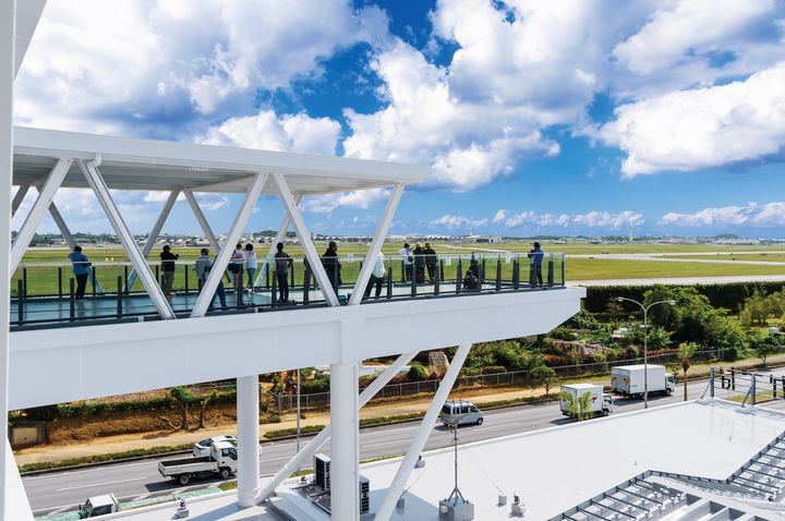 4階展望所からは、嘉手納基地を一望できます。展望所は基地側にせり出す形になっており、基地をよりリアルに感じられます。