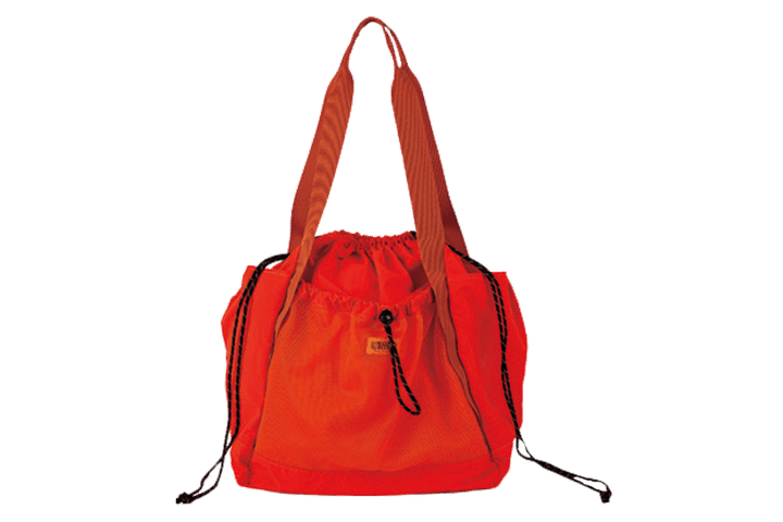 剣道の防具入れからインスパイアされたこちら、なんと370gという軽さで69Lの大容量。細かい荷物は、フロントに配したアジャスター付きのメッシュポケットに入れれば安心です。開口部がドローコードでバイアス方向に絞れるため、荷物少なめのときでもバッグの丸みが損なわれません。