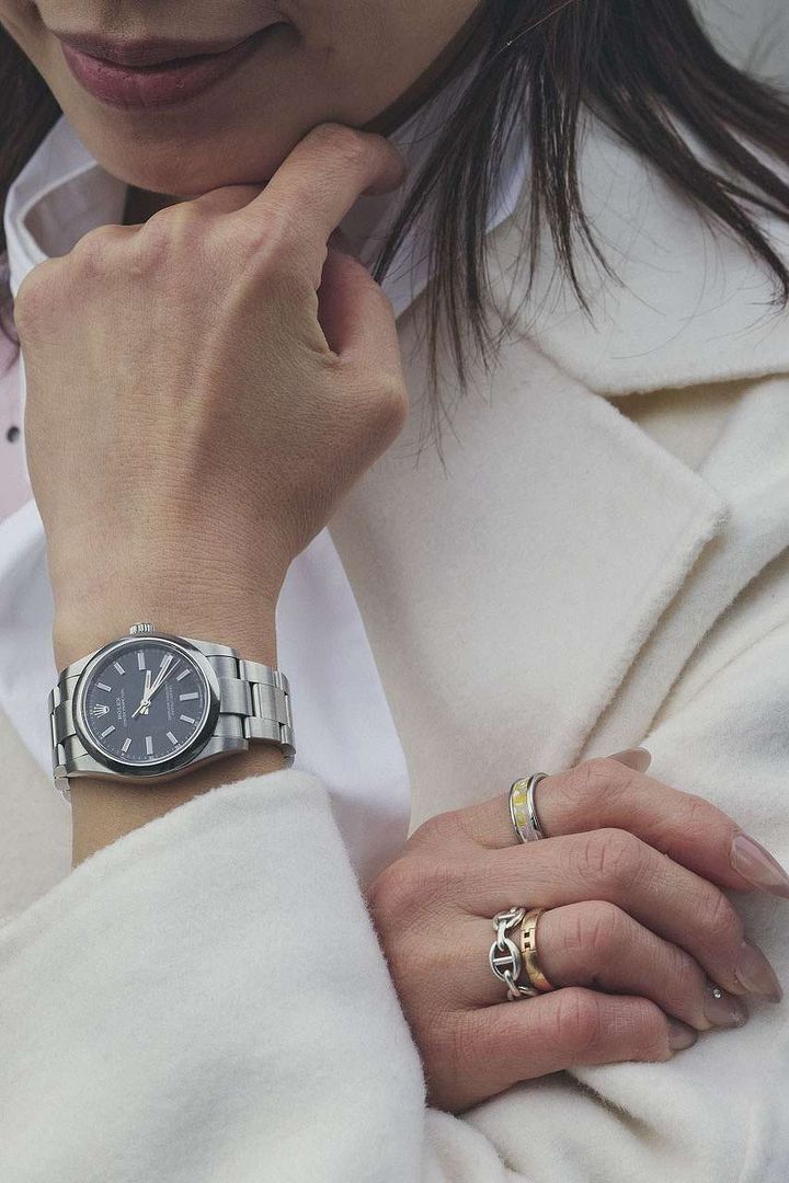 「デイトジャスト」をつけるときはリングはモードに、ブレスレットは華奢に