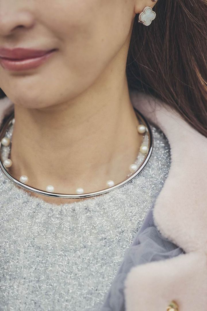 ピンクのコートには白っぽいジュエリーがより映えてくれてキラキラ感が増す気がします。