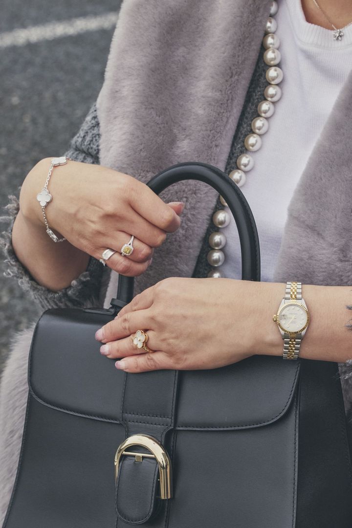 手元はラグジュアリーに、コーデはキュートにするのが拘り