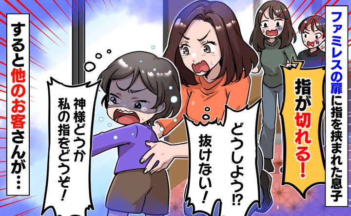 3. ファミレスの扉に指を挟まれた3歳の息子「ダメ、指が切れる!」どうしよう!?すると周りのお客さんが