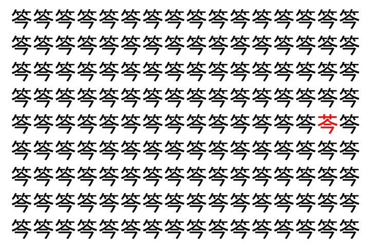 2. 【脳トレ】「笒」の中に紛れて1つ違う文字がある!?あなたは何秒で探し出せるかな??【違う文字を探せ!】