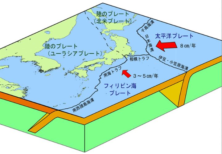 「『スロー地震』はプレート境界の巨大地震発生域周辺で起こることが多いです。プレート境界には、スロー地震を時々起こすような場所や、日頃からずるずる滑っている場所、プレート同士がぴったりくっついてひずみをため込み、巨大地震を起こして一気にひずみを解放する可能性がある場所などがあることがわかってきました」
