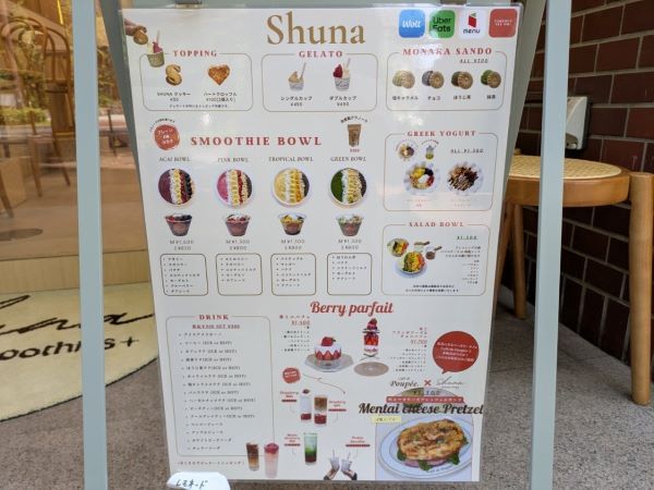 Shunaで人気のメニューは、スムージーやジェラート、アサイーボウルなどの、こだわり抜いた品々。
