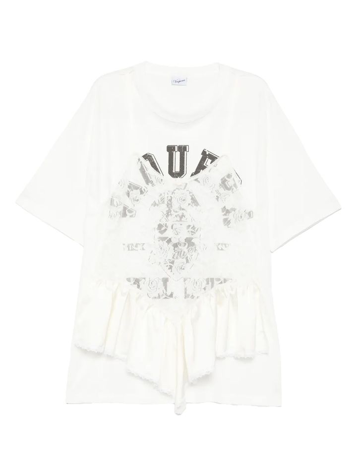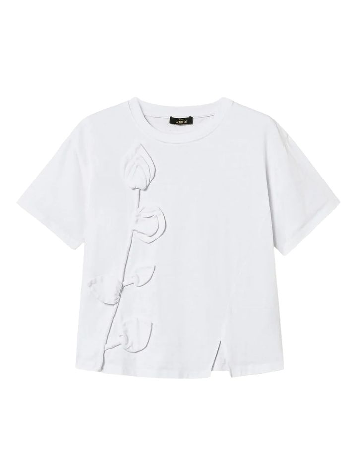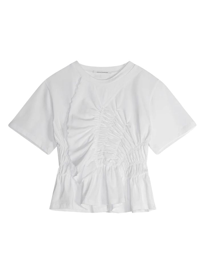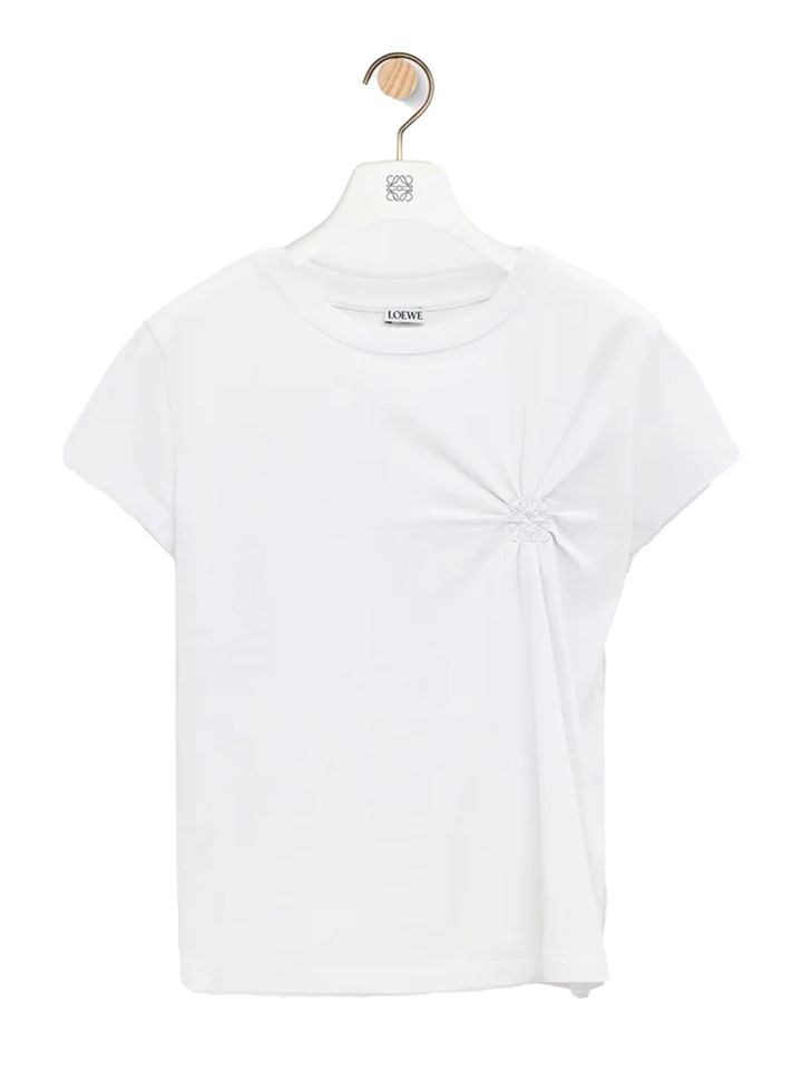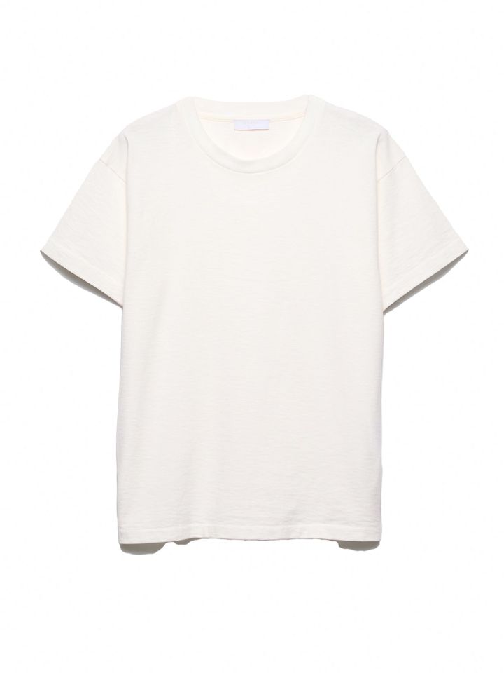 シンプルな白Tもいいけれど、少しのディテールでぐっと洒落感が引き立つのが、デザインコンシャスな一枚。たとえば、ほんのりシワ加工の入った素材感や、さりげない刺繍やカットアウトといった表情のあるディテールは、一枚で着てもサマになり、デニムにさらっと合わせるだけでスタイルが完成するのが魅力。ベーシックの枠にとどまらず、“普通じゃない”白Tを探しているなら、狙い目だ。