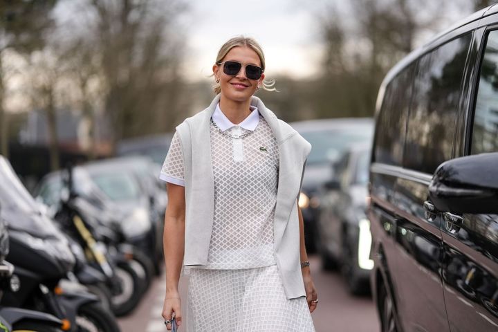 プレッピー人気の高まりとともに、昨年からじわじわと注目度を上げているのがポロシャツ。今季は、ミディ丈のプリーツスカートやデニムと合わせて、トラッドを今のムードで楽しみたい。スナップの女性のように、襟もとにネックレスを重ねれば、シンプルな一枚も一気にこなれた印象に。