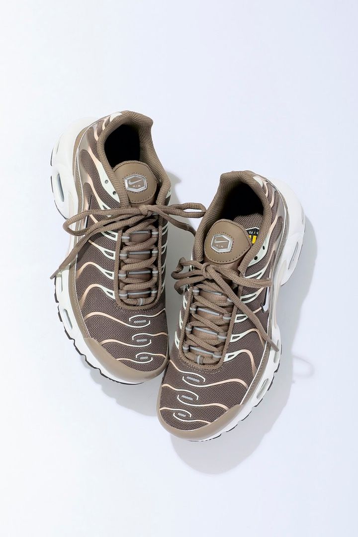 (上から)エッジが効いたスポーティなラインもブラウンで優しげにシフト。[AIR MAX PLUS F FADE]¥23,100、特徴のあるボリュームソールは履き心地もふっかふか。[NIKE AIR MAX PORTAL SE]¥15,620、玄人みのある毛足長めのスウェードが、足もとに立体感を与えます。[NIKE AIR PEGASUS 2005 SDE]¥21,230、ポップなカラーリングでスポーティになりすぎず、洒落感をキープ。[NIKE AIR PEGASUS MET]¥21,230/以上すべてナイキ スポーツウェア(ナイキ カスタマーサービス)