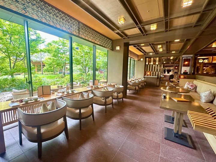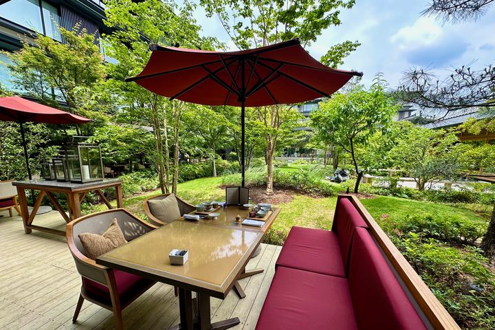 緑豊かな美しい庭園に面しており、テラスでいただくこともできます。