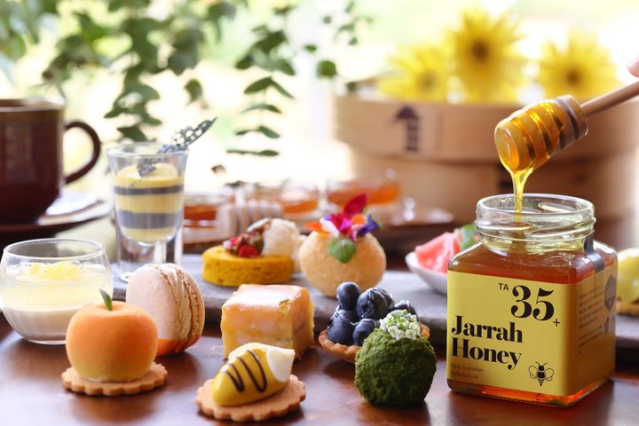 西オーストラリアの大自然が育んだ希少な「ジャラハニー」をはじめ、「レッドガムハニー」「ブラックバットハニー」の3種を贅沢に使用。はちみつそのままの味わいを楽しめるコンディメントをスイーツやセイボリーにちょい足しして、自分好みのテイストにアレンジできます。メニューには相性のよいはちみつが書いてあるので、あれこれ試しながら味わう楽しい時間を過ごせます。