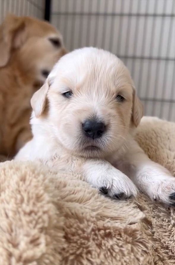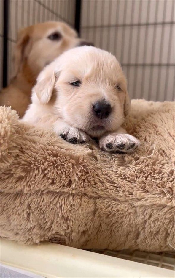 かわいい困り顔と小さくてモフモフな愛らしいゴールデンレトリバーの子犬の様子は、こちらの投稿内の動画からご覧いただけます。