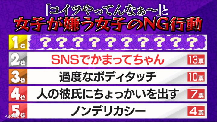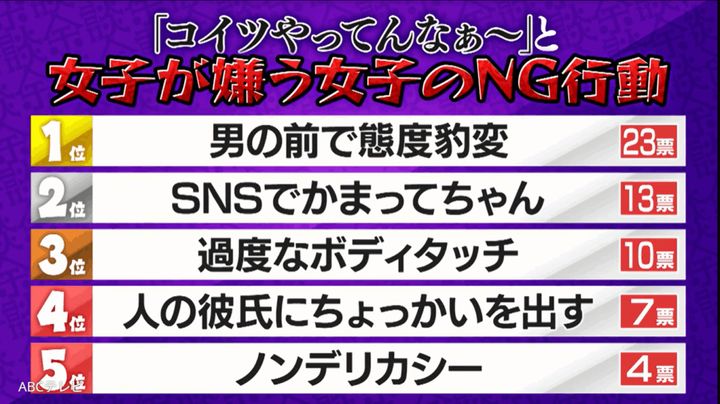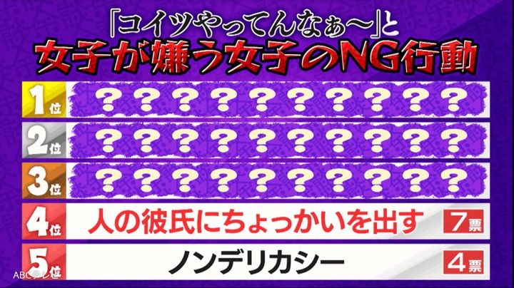 なお、この女子が嫌う女子のNG行動ランキングは、6月4日に放送されたバラエティ番組『これ余談なんですけど・・・』(ABCテレビ)で発表された。TVerでも無料配信中。