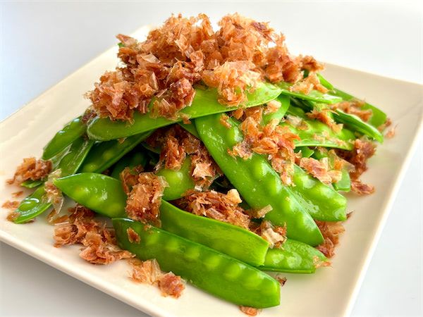 【有本家の食卓】葉子さんの定番♪「絹さやのおかかがけ」は和えるんじゃなくフワフワおかかをのせるの♡