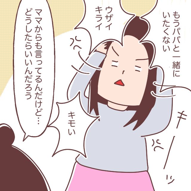 そんな夫の悪ふざけに「もうパパと一緒にいたくない!ウザい!キライ!キモイ!」と文句だらけの娘。「ママから言ってるんだけど・・どうしたらいいだろう」と途方に暮れてしまいました。