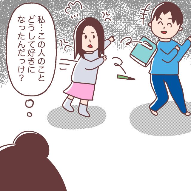 娘が持っていたノートや鉛筆を夫に投げつけるも、嬉しそうに笑いながら逃げる夫を見て、「私・・この人のことどうして好きになったんだっけ?」と自分が信じられなくなってしまいました。