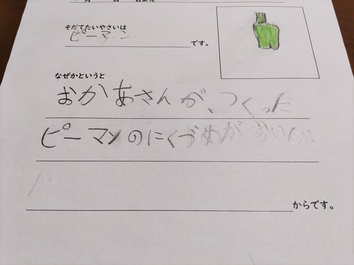 育てたい植物として選ばれたのは「ピーマン」。その理由がまた、とってもほほ笑ましいんです。「ピーマンの肉詰めがおいしいから」そう書かれていたのだとか。こんな風に言われたら、うれしくて毎日でも作ってあげたくなりますよね。