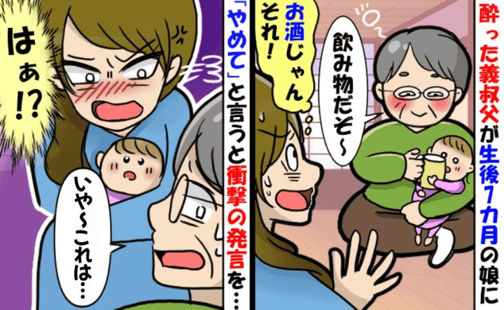 「私が悪いの!?」義叔父が生後7カ月の娘にお酒を!?キツく止めると、とんでもない行動に!