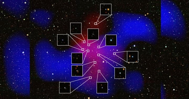 ここで合計11個の超巨大ブラックホールが一斉に輝いているという、極めて特異な構造が見つかりました。