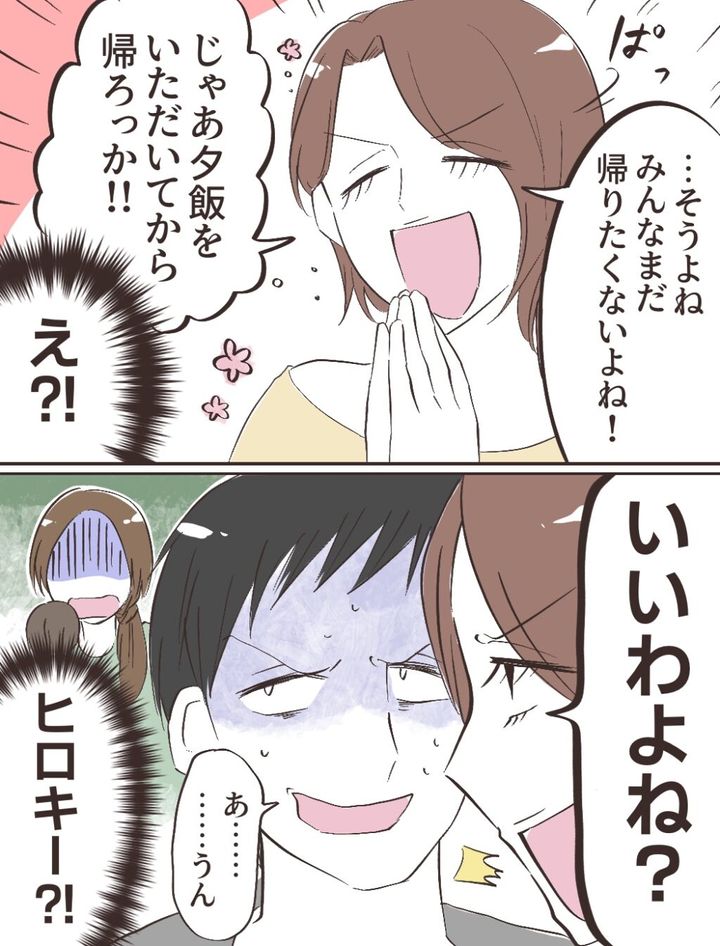 「いいわよね?」とすごい圧でヒロキに詰め寄り、「あ・・・うん」と答えたヒロキ。その言葉を聞いて、「ヒロキー!?」と絶望的な気分になりました。