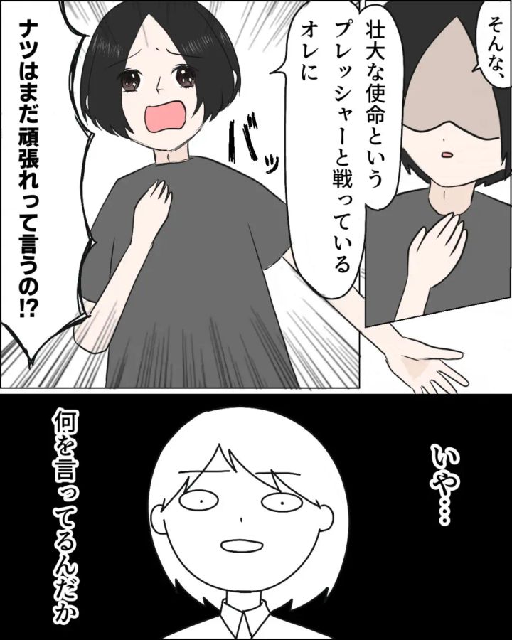 「そんな、壮大な使命というプレッシャーと戦っているオレに、ナツはまだ頑張れって言うの!?」芝居じみたフミヤの言葉に、「いや・・何を言ってるんだか」と呆れる私は、