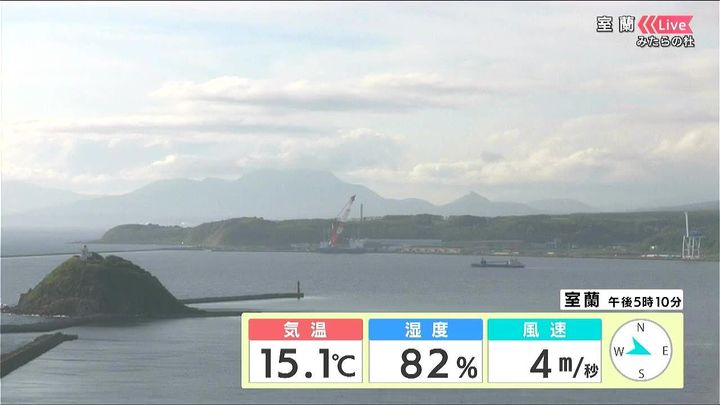 背景は5日午後5時ごろの室蘭情報カメラ