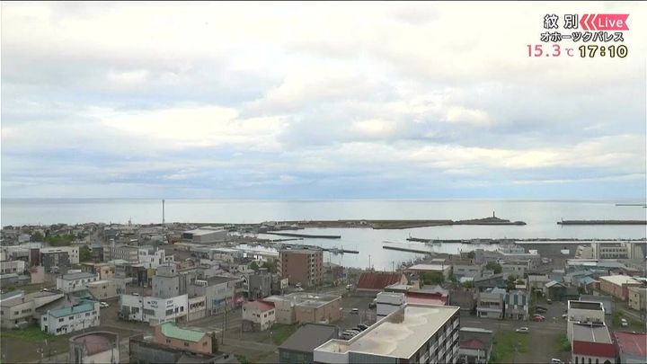 背景は5日午後5時ごろの紋別情報カメラ
