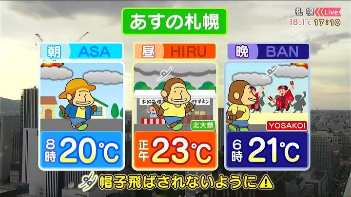 あす6日(金)の札幌です!朝昼晩の天気をもんすけでお伝えします!