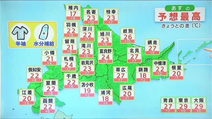 あす6日(金)は暑い!道内の予想最高気温