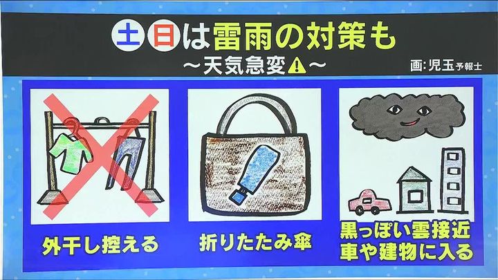 あす6日(金)は紫外線対策、暑さ対策が必要ですが、土日は雷雨の対策もしないといけません。