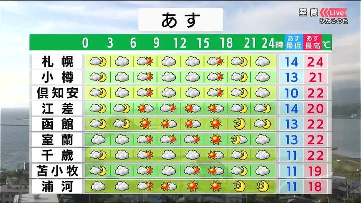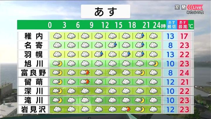 ・あすの札幌の朝昼晩の天気