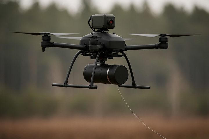 光ファイバー式ドローンは、現状最強の対ジャミング性能を誇る / Credit:Generated by OpenAI’s DALL·E,ナゾロジー編集部