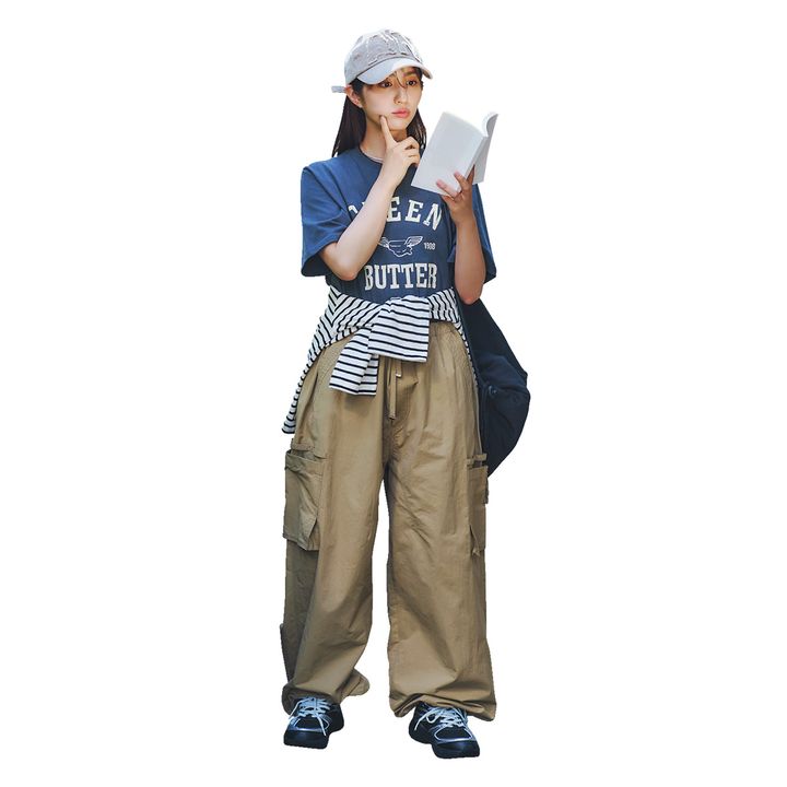 3. アクティブお洒落に“楽ちんロゴT”とゆるカーゴパンツが好相性!